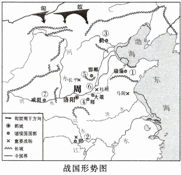 (1)请写出右图中序号所代表的战国七雄的名称。