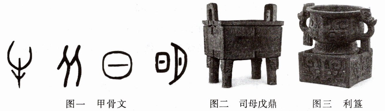 (1)文字是记录语言的符号系统,对人类的文明起着很大的促进作用。你能辨认出图一中的甲骨文是什么字吗?试试看。