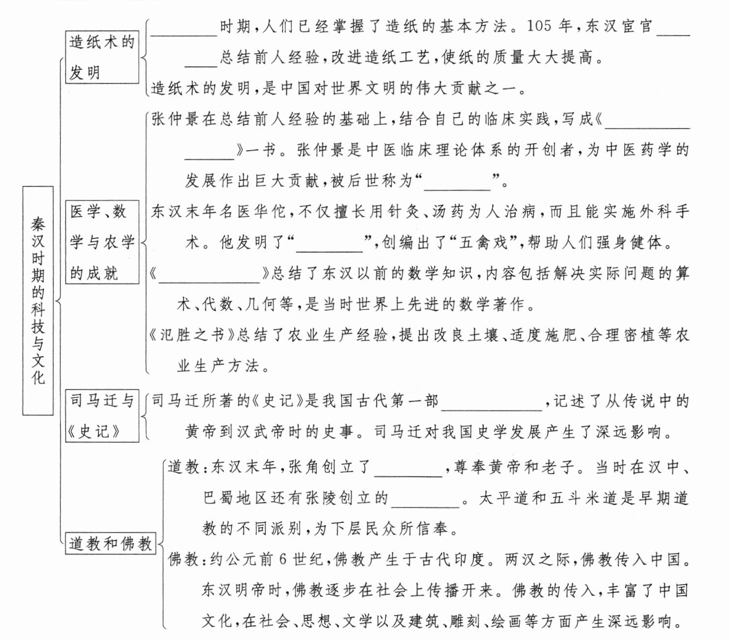 │ ├─______时期,人们已经掌握了造纸的基本方法。105年,东汉宦官______总结前人经验,改进造纸工艺,使纸的质量大大提高。