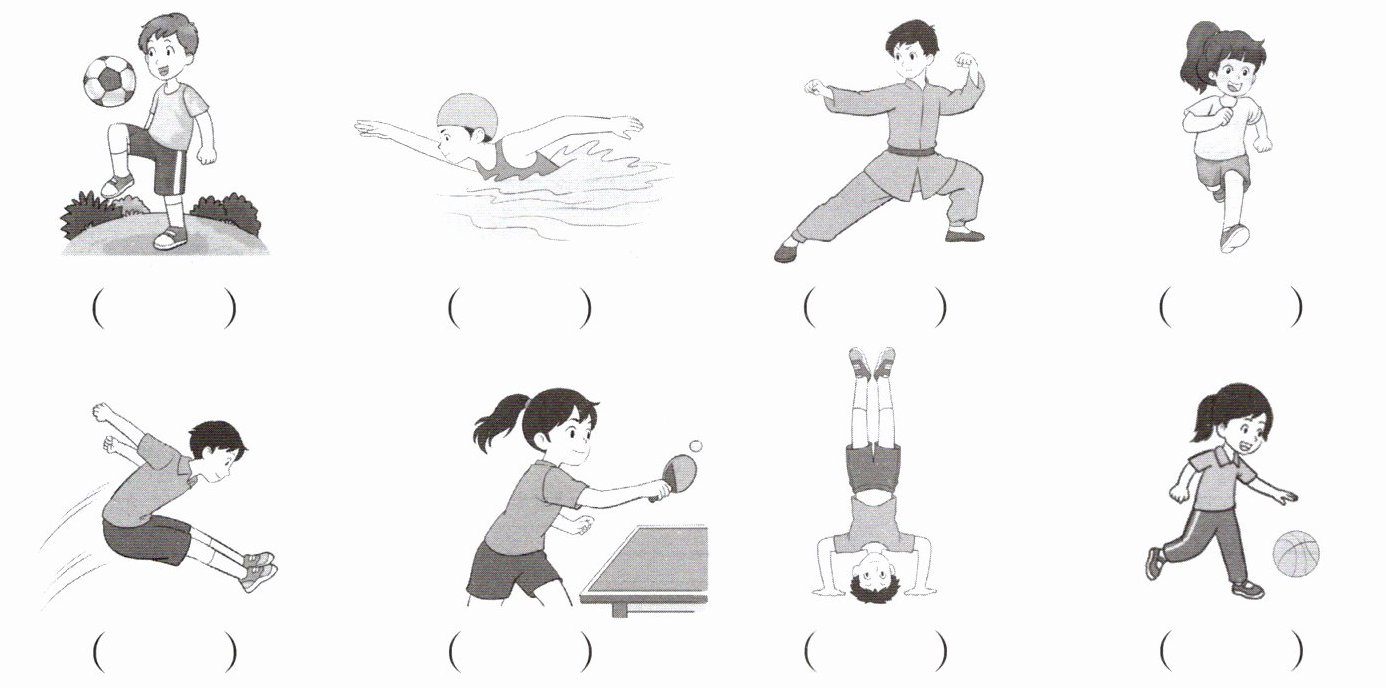 同学们正在一起讨论各自的运动技能。听录音,选择正确的选项,在对应的括号里画“√”。