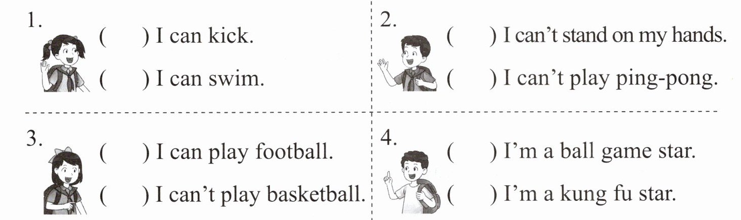 1. I can kick. 2. I can't stand on my hands. 3. I can't play basketball. 4. I'm a kung fu star.