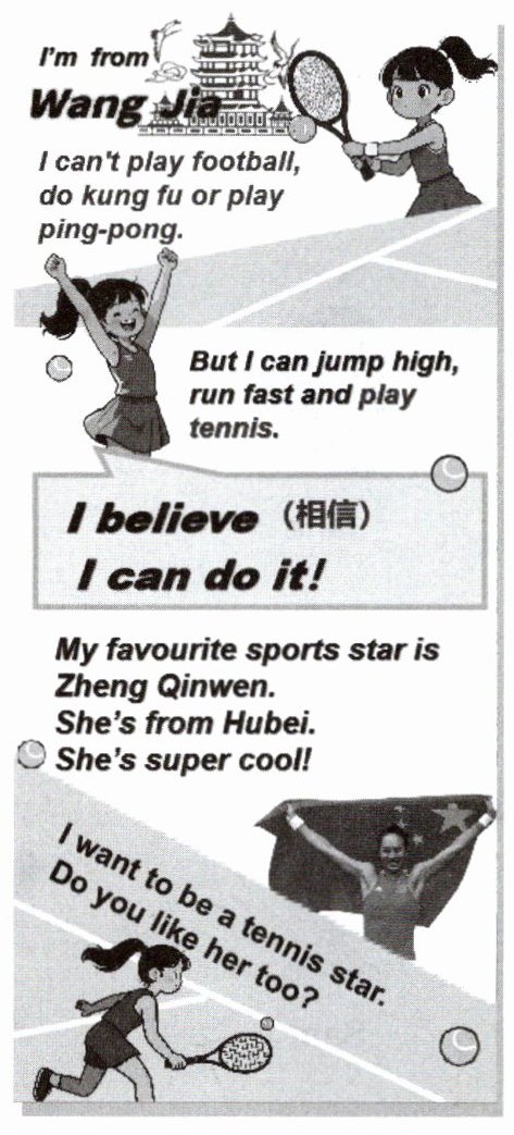 ( ) 2. She can't play football, play ping-pong or do kung fu.