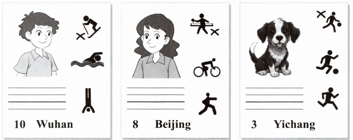 学校运动明星的评选开始了。听录音,帮下面海报中的运动明星写上正确的名字吧!