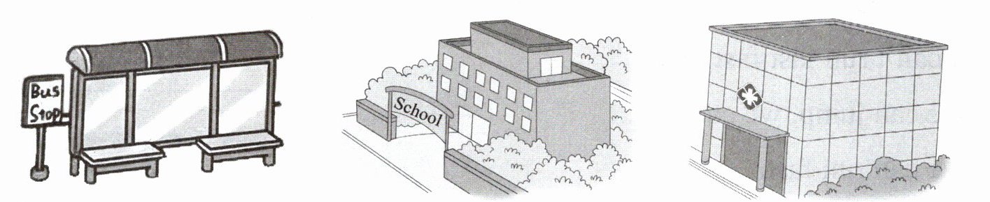 Toby 来到江城武汉旅游,下火车后,他站在火车站广场,看到周围有许多建筑。听录音,根据听到的先后顺序,给下列地点标上数字序号。
