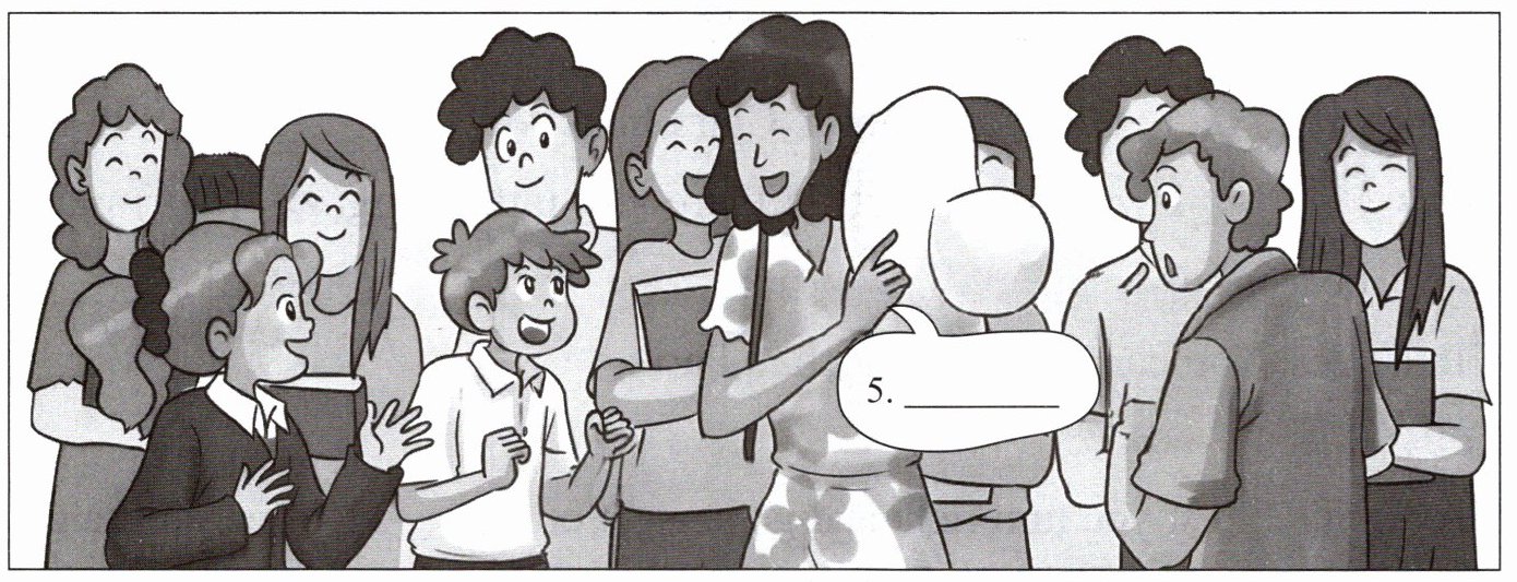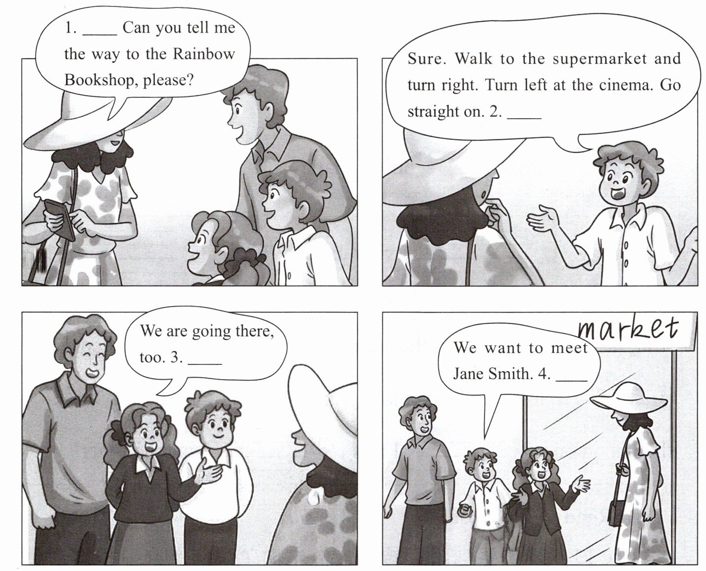 A. Thank you for showing me the way. B. Excuse me. C. The bookshop is on your left. D. She’s our favourite writer. E. You can go with us.