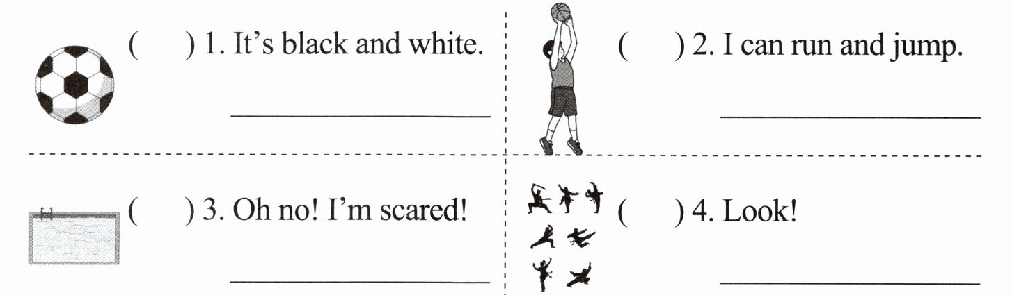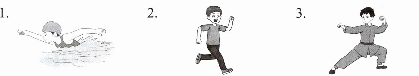 1. swim 2. run 3. do kung fu 4. play football 5. play basketball 6. play ping-pong