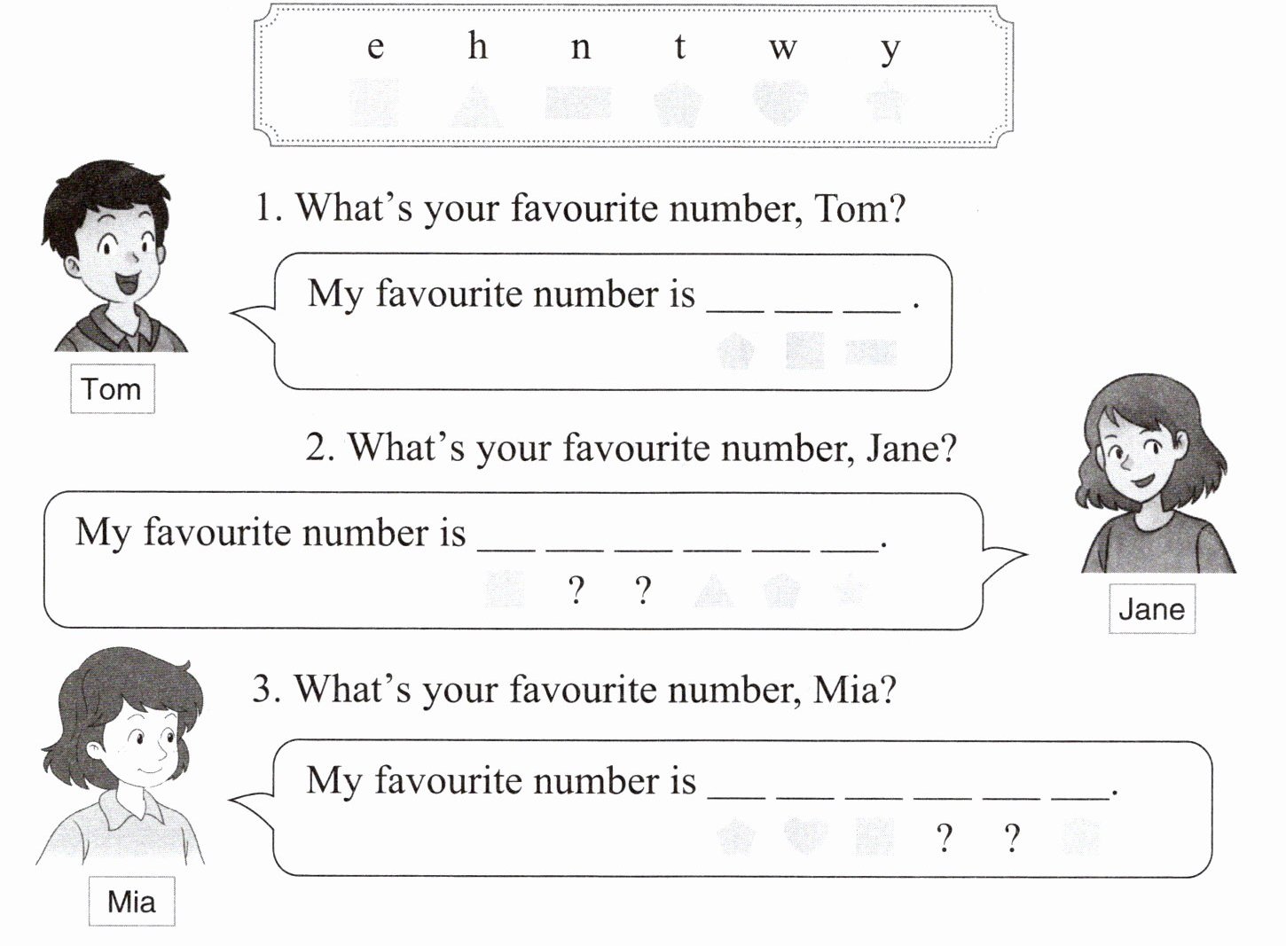 Nana正在和同学们玩猜数字游戏。找规律,在横线处填写字母,完成句子。