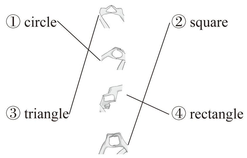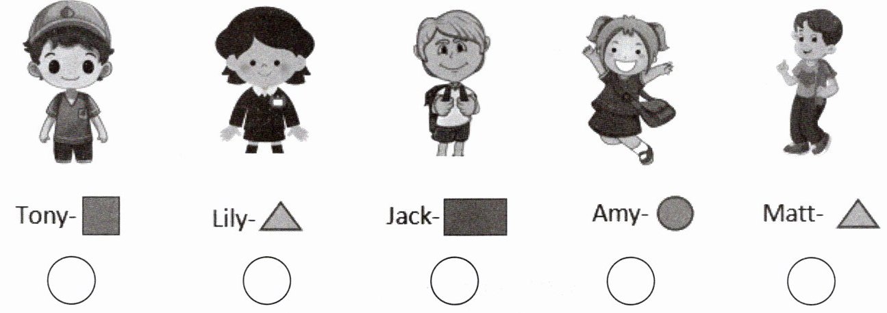同学们正在进行绘画比赛。听录音,判断他们画的图形是否与描述相符,相符的在下方圆圈里写“T”,不相符的写“F”。