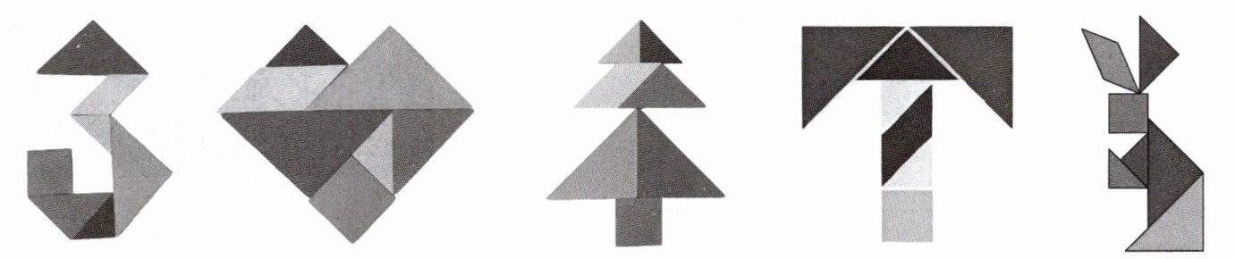 Toby用七巧板(tangram)拼出了许多图案。听录音,根据听到的内容给图片标上数字序号。