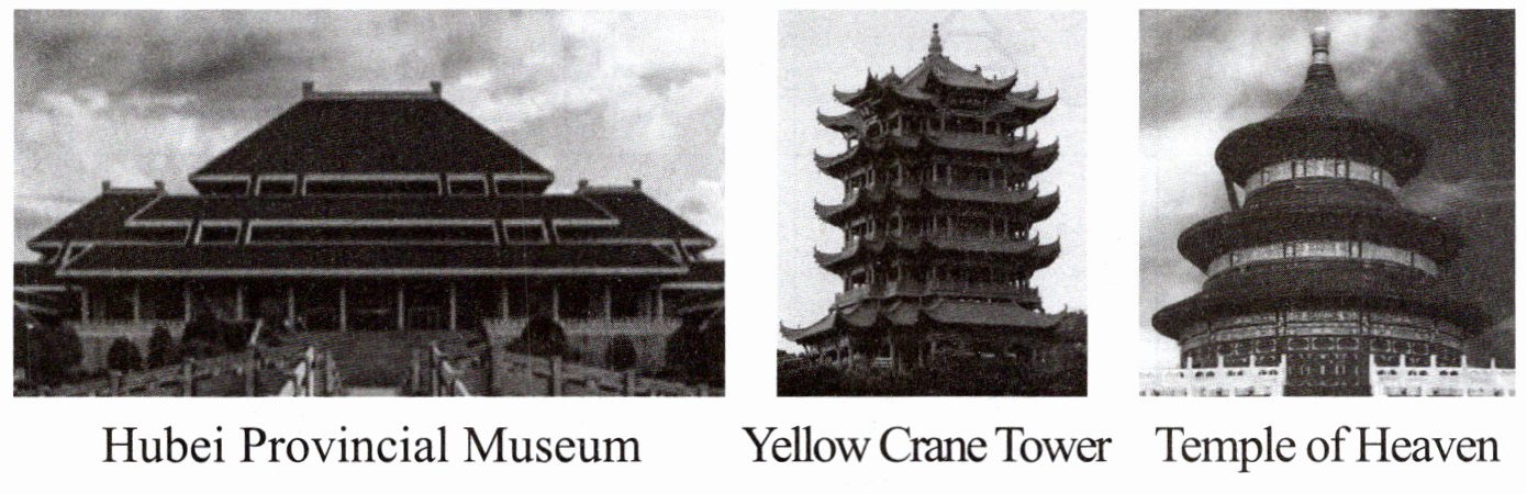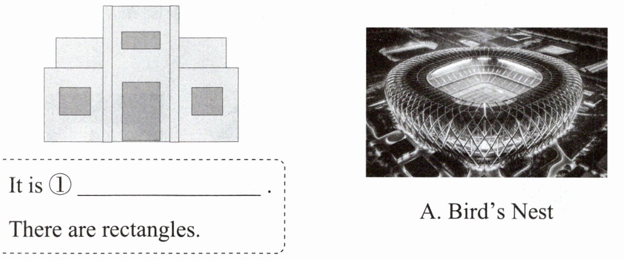 介绍:This is Yellow Crane Tower. It is a famous ancient building in China. There are rectangles and triangles. (答案不唯一,可根据自己画的图形和选择的建筑进行合理介绍)