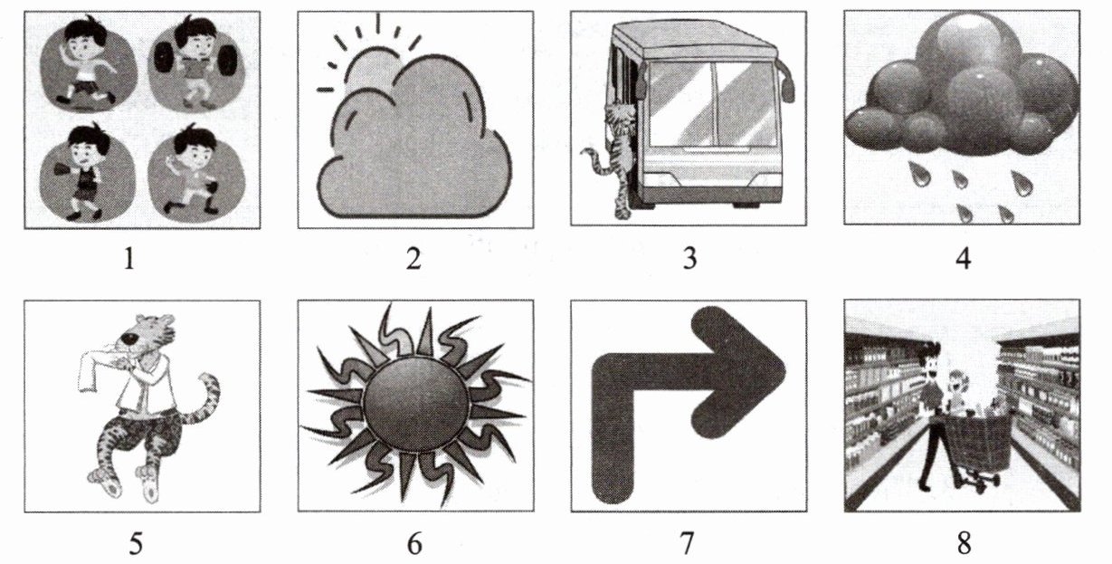 听录音,判断图片与录音内容是否相符。相符的在括号里写“Y”,不相符的写“N”。
