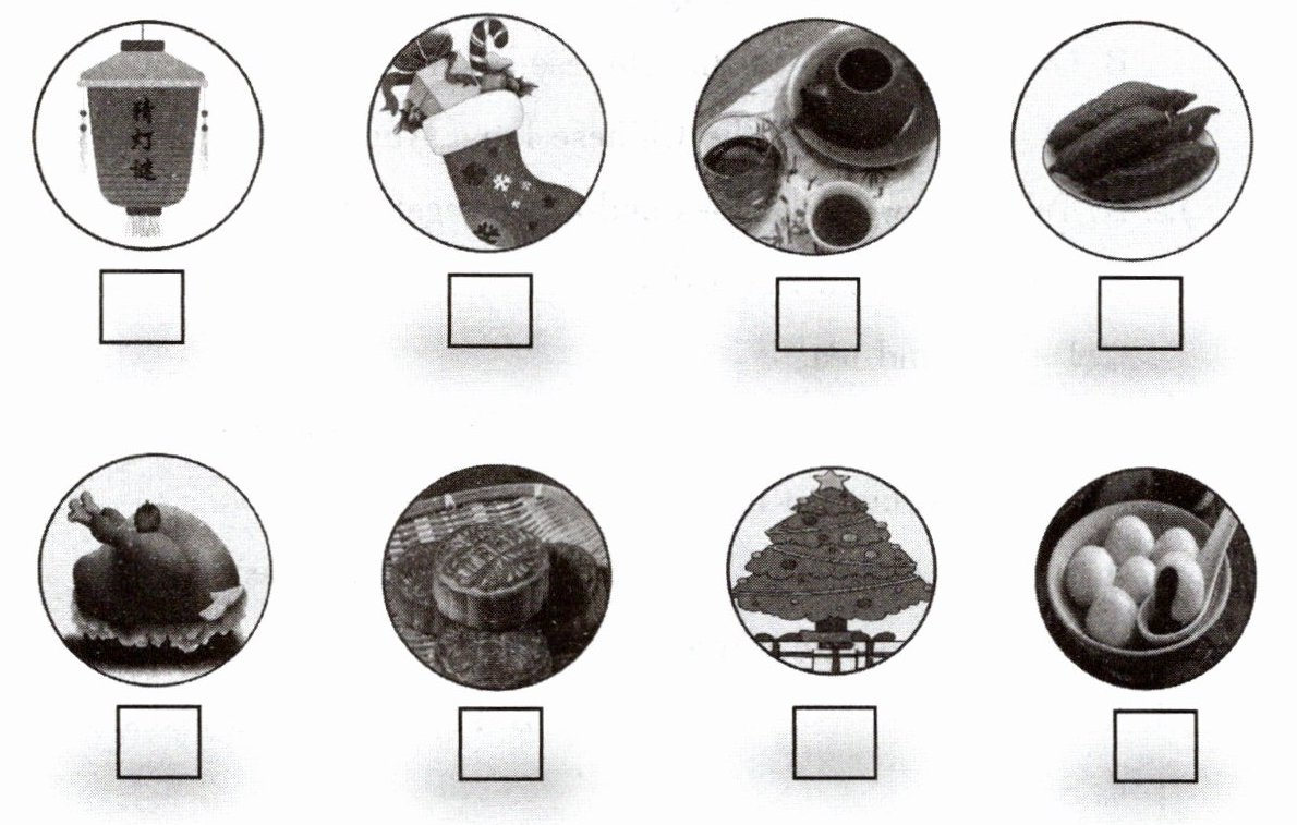 听录音,根据顺序在方框内标上相应的数字序号。