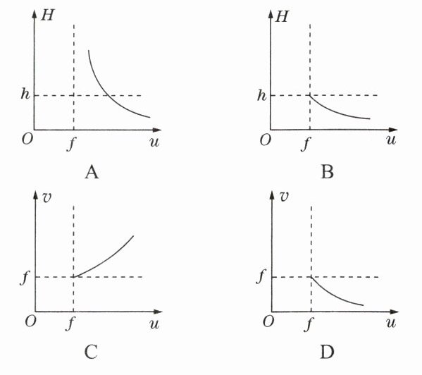 3.(2024.江苏南通期中)在“探究凸透镜成像规律”的实验中,将高度为h的物体沿主光轴从远处向透镜的焦点靠近,已知透镜的焦距为f。则下列反映像高H或像距随物距u变化的关系图像中,可能的是(