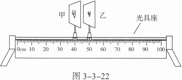 5.(2022.江苏镇江中考)如图3−3−22所示,凸透镜位于P处(图中未画出)位置不变,移动蜡烛,光屏先后在P同侧的甲、乙两处得到烛焰清晰的像,且甲处的像比乙处的大,则(