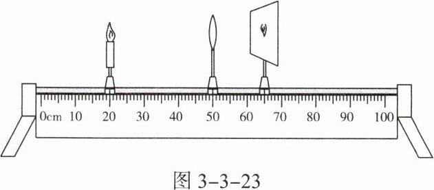 6.(2023.河北中考)(多选)在“探究凸透镜成像的规律”实验中,蜡烛、焦距为10cm的凸透镜、光屏位置如图3−3−23所示时,光屏上恰好呈现烛焰清晰的像。下列说法正确的是(
