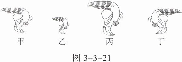 中的鹦鹉图实际大小相等),改变书本到玻璃杯的距离,他所能看到的像可能是图3−3−21中的(
