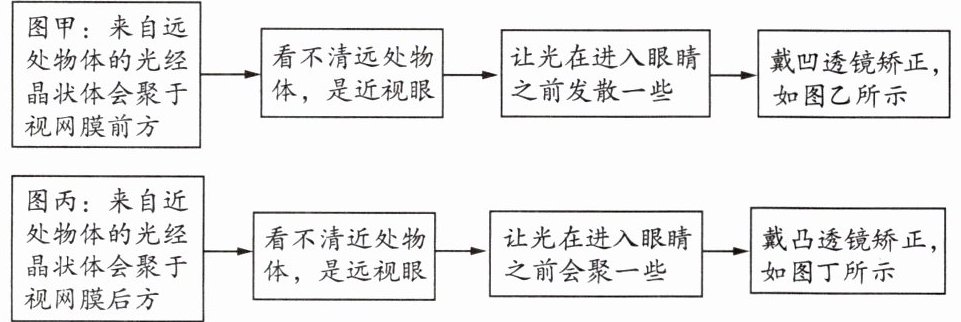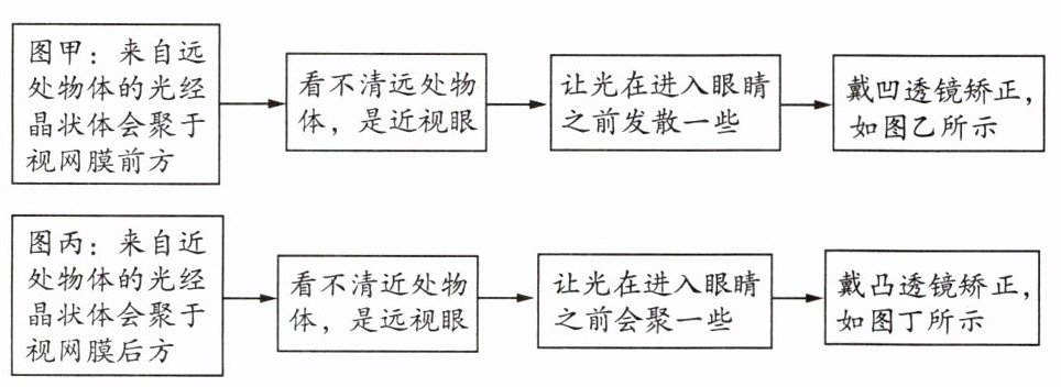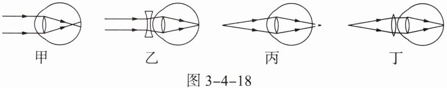 例2 智能手机给人们带来了许多便利,但长时间盯着手机屏幕,容易导致视力下降。下列关于近视眼及其矫正的原理图(图3-4-18)正确的是(