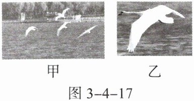 例1 (2024·西安碑林区模拟)浐灞湿地公园是西安湿地系统的重要组成部分,拥有160万平方米植被,有各种鸟类130多种。如图3-4-17甲是小明周末去公园游玩时用相机拍摄的一张照片,下列有关说法正确的是(