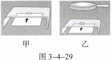 7. (2024·江苏无锡惠山区期末)自制水滴显微镜的过程是:在透明塑料板上先滴一滴大小合适的水滴,透过水滴观察下方的黑色箭头(如图3-4-29甲),可以看到黑色箭头成