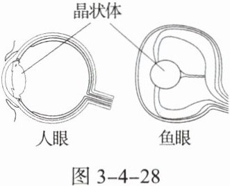 6. (2024·西安长安区期末)如图3-4-28是人眼与鱼眼的结构示意图。人的眼球好像一架照相机,晶状体和角膜的共同作用相当于一个