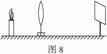 如图8所示,在“探究凸透镜成像的规律”实验中,烛焰在距离凸透镜8 cm处时,在距离凸透镜15 cm处的光屏上成倒立的像。保持蜡烛和光屏不动,现把凸透镜向光屏方向移动7 cm。下列关于烛焰在光屏上成像的说法正确的是(