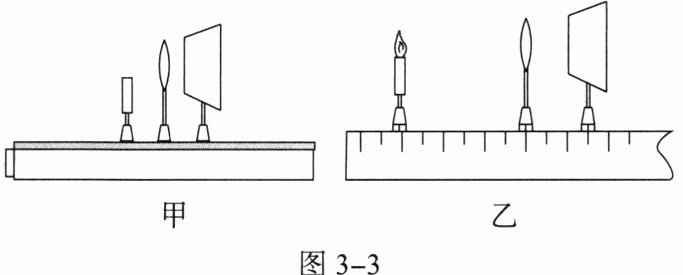 (1)为使烛焰的像成在光屏中央,小丽的调节场景如图3-3甲,操作中的不当之处是