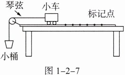 小明利用一根琴弦和一些简单器材制作了如图1-2-7所示的“单弦琴”,小车静止在某位置,拨动箭头处琴弦的同时,向小桶里增加沙子,能______(选填“升高”或“降低”)音调;若拨动琴弦后由静止释放小车,音调也会改变;若想改变“单弦琴”的音色,可以______。