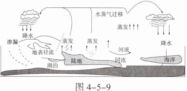 4. 如图4-5-9是自然界中水的循环示意图,下列说法正确的是(