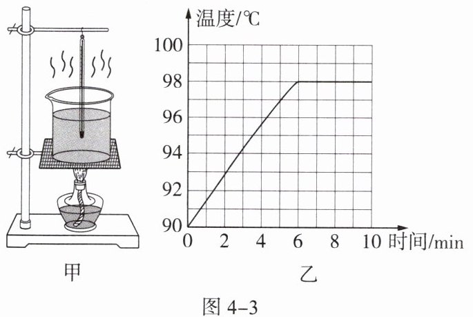 例4(2024·江苏镇江中考)小李用图4-3甲所示装置观察水的沸腾,正确实验并采集数据后,绘制出如图乙所示的图像。关于本实验,下列说法正确的是(