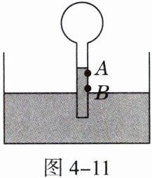 8. 如图4-11所示,这是意大利物理学家伽利略制造的世界上第一支温度计,它是由长颈玻璃瓶倒插在液体槽里构成的,外界温度改变时,可由玻璃管中的液面高低来标记温度,那么下列说法中正确的是(