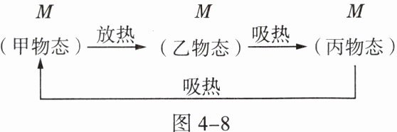3. 物质M通过吸、放热,出现三种不同物态,如图4-8所示,甲、乙、丙物态依次为(