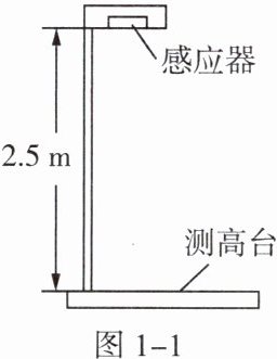 例2 (2024·江苏苏州昆山期中)图1-1为一种身高测量仪,其顶部的感应器竖直向下发射超声波信号,经下方物体反射后返回,被感应器接收。某同学站上测高台,感应器记录信号从发射到接收所经历的时间为$5 × 10^{-3}\ s$。已知感应器距测高台的高度为2.5 m,空气中的声速取340 m/s,则该同学的身高为(