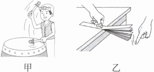 B.乙图中,改变尺子伸出桌面的长度,用相同的力拨动,是为了研究响度与材料的关系