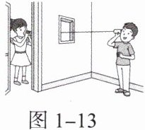 (2)如图1-13所示,用棉线连接“土电话”并拉紧棉线,能实现10 m间通话,这表明