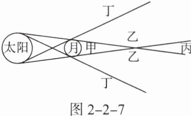 (2024·江苏苏州昆山期中)如图2-2-7为月球的影区分布,当地球运动到影区内时,地球上位于哪个影区的人可以看到“日偏食”的现象(