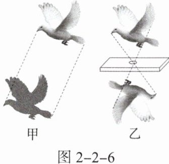 例1 (2024·江苏南通海门区期末)沈括在《梦溪笔谈》中记述到“若鸢飞空中,其影随鸢而移”(如图2-2-6甲所示),而在纸窗上开一个小孔,使鸢的影子呈现在室内纸屏上,却观察到“鸢东则影西,鸢西则影东”(如图乙所示),则下列说法错误的是(