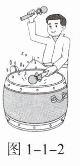 (1)如图1-1-2所示,在鼓面上撒一些纸屑,他用木槌敲击鼓面的时候,既能听到鼓声,又能观察到______。通过实验现象得出结论:______。将敲响的鼓面用手一按,发声会停止,这是因为______。