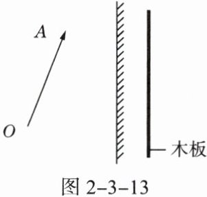 如图2-3-13所示,物体OA放在平面镜前,不透光的木板放在平面镜后,请画出物体OA在平面镜中的像。