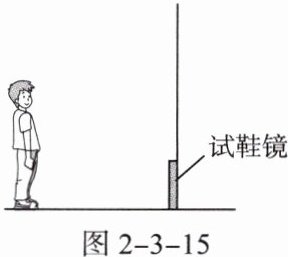 如图2-3-15,小华在商场买鞋时,他直立面向竖直放置在地面上的试鞋镜,但在镜中看不到自己脚上新鞋的像。为了看到新鞋的像,以下做法可行的是( )