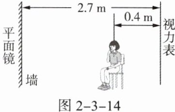 例3 如图2-3-14所示,检查视力时,视力表挂在被测者头部的后上方,被测者识别对面墙上镜子里的像。下列表述中正确的是(