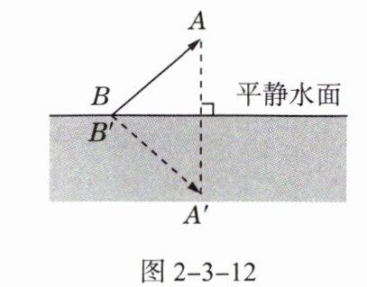 例2 (2024·江苏无锡惠山区模拟)如图2-3-11是水面上一根倾斜芦苇AB的简化图,请作出AB经水面所成的像。