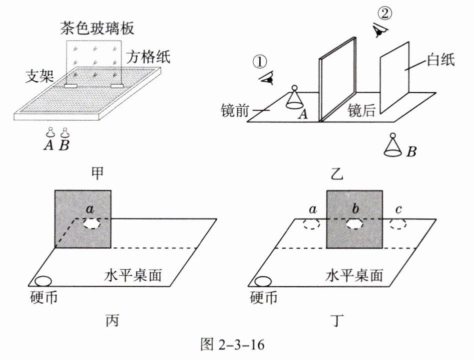 (4)如图丙所示,将一枚硬币放在竖直的平面镜前,硬币的像在a处;将平面镜平移至如图丁所示的位置时,硬币的成像情况是______。