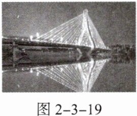 例1 如图2-3-19所示,夜晚,桥上实景与水中“倒影”交相辉映,绚丽多彩。已知桥下河水深为5 m,桥上一灯距水面8 m,则该灯的“倒影”距水面
