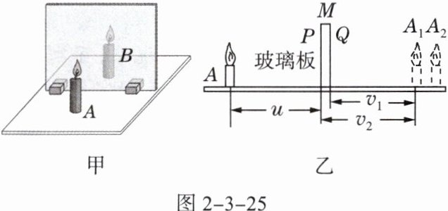 (4)玻璃板前后两个面都能成像,图中的像A₁是通过玻璃板前面形成的,像A₂是通过玻璃板后面形成的,则像A₁到玻璃板的距离是v₂。
