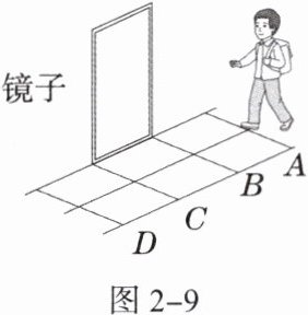 5. (2024·南京鼓楼区期末)如图2-9所示,走廊的墙边竖直立有一面镜子,小强从镜子边经过,下列说法中错误的是(