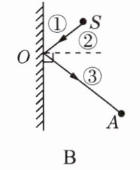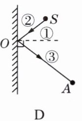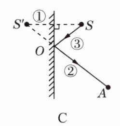 C 解析:①先作出S关于平面镜的对称点S'即为S的像;②连接S'A交平面镜于点O,连接OA为反射光线;③连接SO为入射光线。