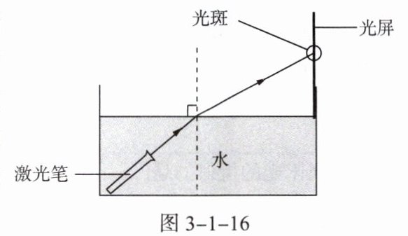 (2)小明为了验证自己的推测,进行了如图3-1-16所示的实验,实验过程中逐渐增大激光笔射向水面的入射角的角度,当增大到某一角度时,小明观察到______,证实了自己的推测。