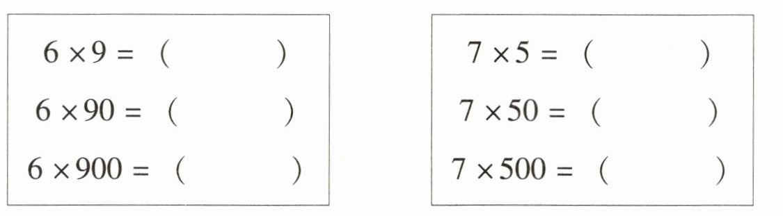 二、先算出每组题中第1题的积,再写出下面两题的得数。
