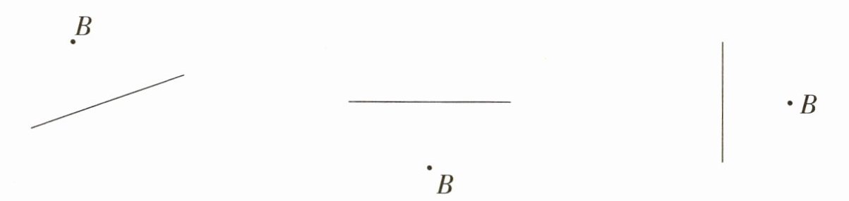 3. 沿直尺移动三角板,使与已知直线重合的直角边经过 $B$ 点。