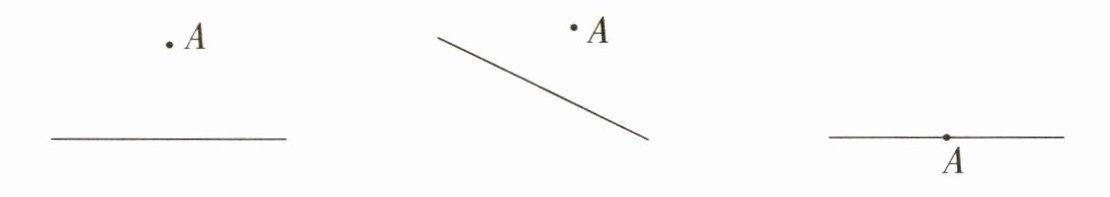 2. 对于中间图:同样把三角尺一条直角边与已知直线重合,平移三角尺让另一条直角边过点 $A$,沿着该直角边作直线,此直线就是过 $A$ 点给已知直线的垂线。
